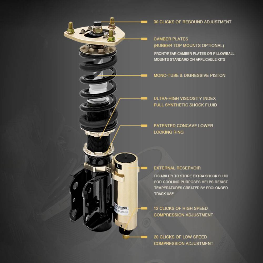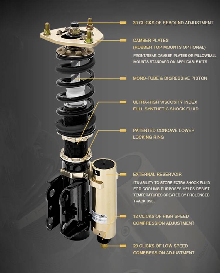 The ZX Series adopts an upright cylinder design, allowing for the possibility of replacing the upper mount, while combining the excellent characteristics of the DS and ER series. Coupled with ultra-high viscosity index racing shock fluid, the ZX Series can maintain outstanding performance on the track and in drifting competitions for extended periods.